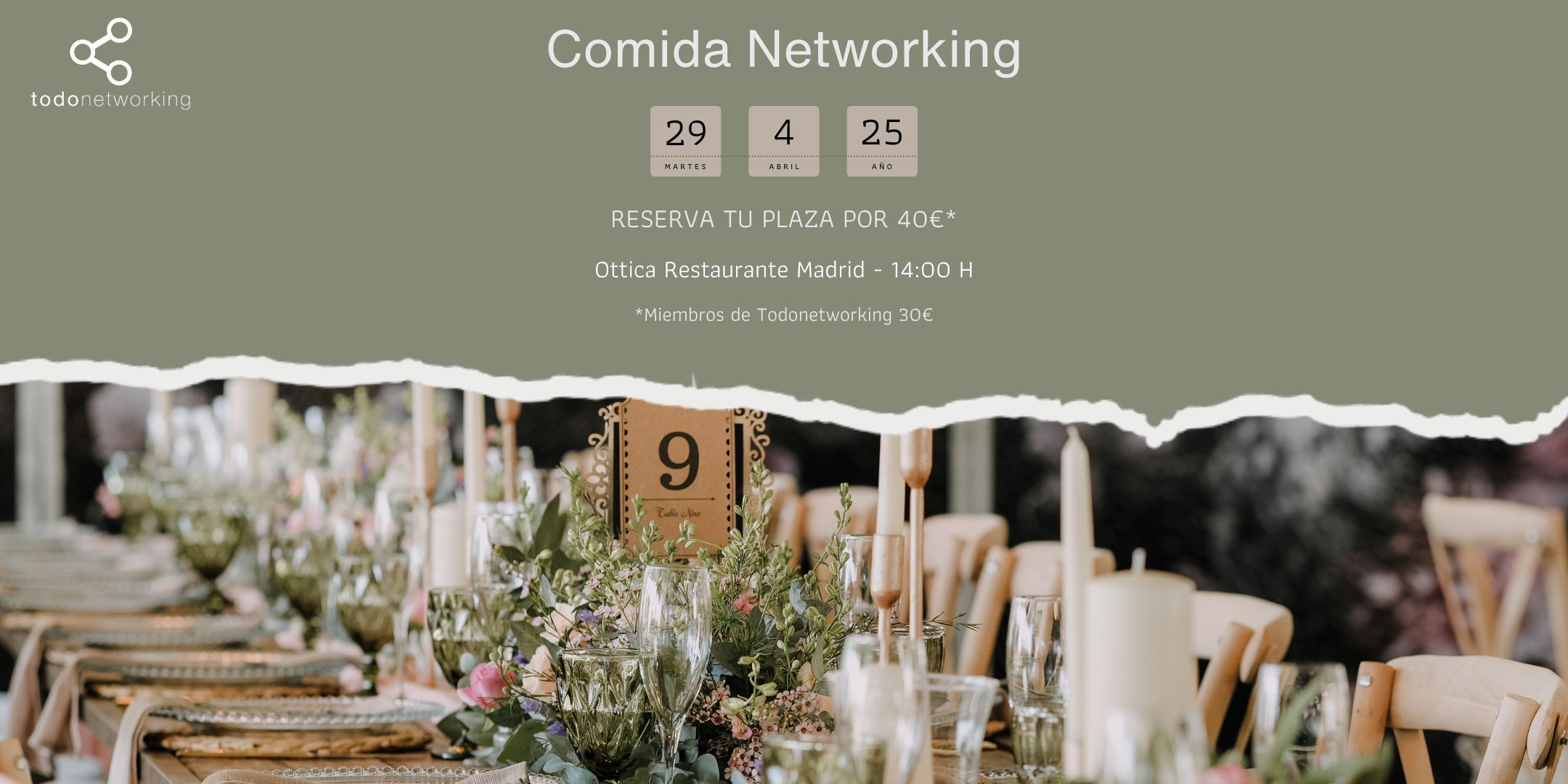 Este 𝗺𝗮𝗿𝘁𝗲𝘀 𝟮𝟵 𝗱𝗲 𝗮𝗯𝗿𝗶𝗹 𝗮 𝗹𝗮𝘀 𝟭𝟰:𝟬𝟬𝗵, nos vemos en 𝗥𝗲𝘀𝘁𝗮𝘂𝗿𝗮𝗻𝘁𝗲 𝗢𝘁𝘁𝗶𝗰𝗮 (c/ Padre Claret 1, Madrid) para disfrutar de una comida entre empresarios, emprendedores y profesionales que, como tú, quieren crecer, conectar y abrir nuevas oportunidades.